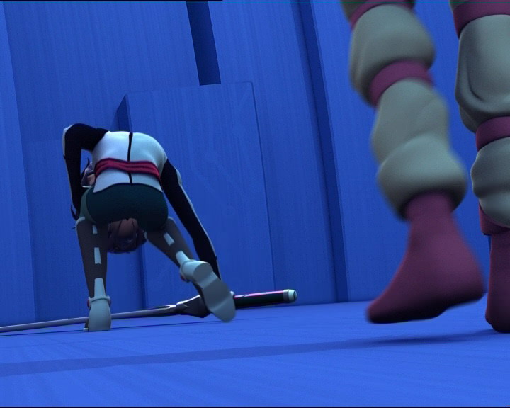 Aelita l’attaque aux champs de force ; ceux-ci sont repoussés par la lourde lame de William, qui finit par envoyer une vague d’énergie à Aelita, la dévirtualisant sur le coup !